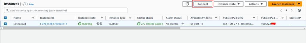 Amazon provides you with more than one way to connect to your EC2 instance. But the most used and easy way is using the SSH. Select the instance you want to connect and click connect.