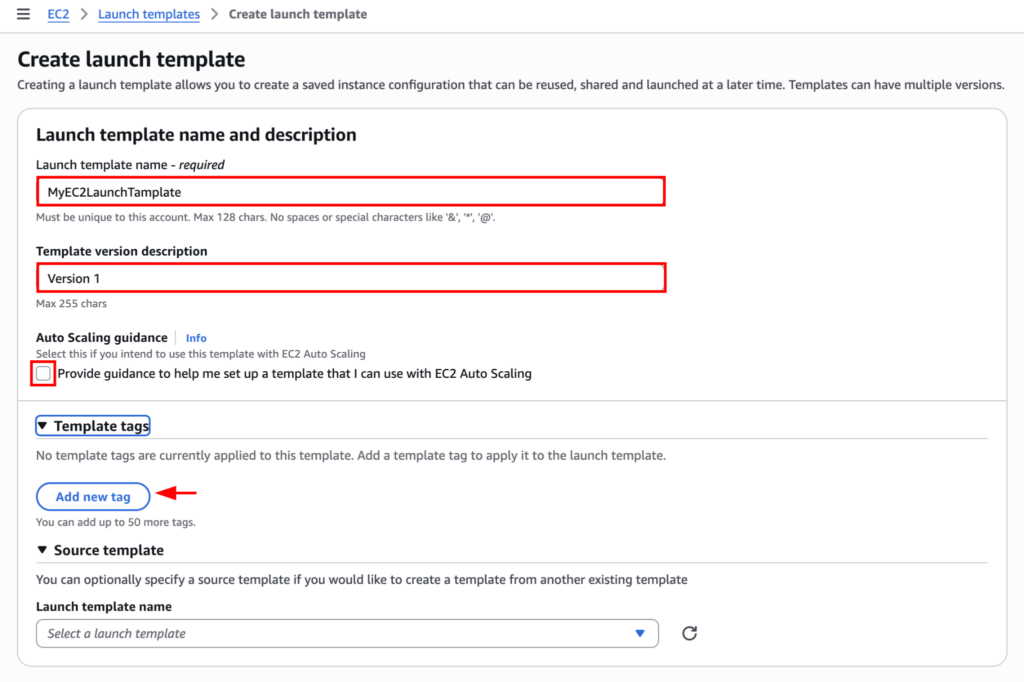 You can also click on the “Auto Scaling guidance” if you intend to use it for auto scaling. As well as you can also add tags for your template from here.